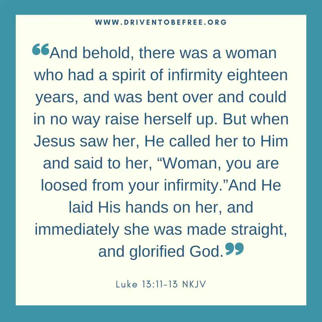 Not every disease, sickness, or malady stems from a spirit of infirmity. However, there are sicknesses that are either worsened or caused by an unclean spirit. The Bible records that Jesus healed the multitudes, but he also set them free. A woman was bent over with a spirit of infirmity for 18 years! When Jesus loosed her, she could stand up straight!